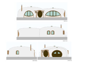 Cúpulas tabicadas y un diseño orgánico, con cubierta vegetal y carpintería de madera, bioclimatismo y energías limpias.